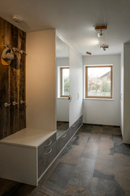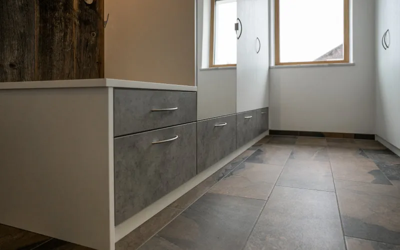 Durch diese Kombination aus Stauraum, Übersichtlichkeit und funktionaler Gestaltung wird der Flurbereich optimal genutzt und bleibt stets aufgeräumt und einladend.
